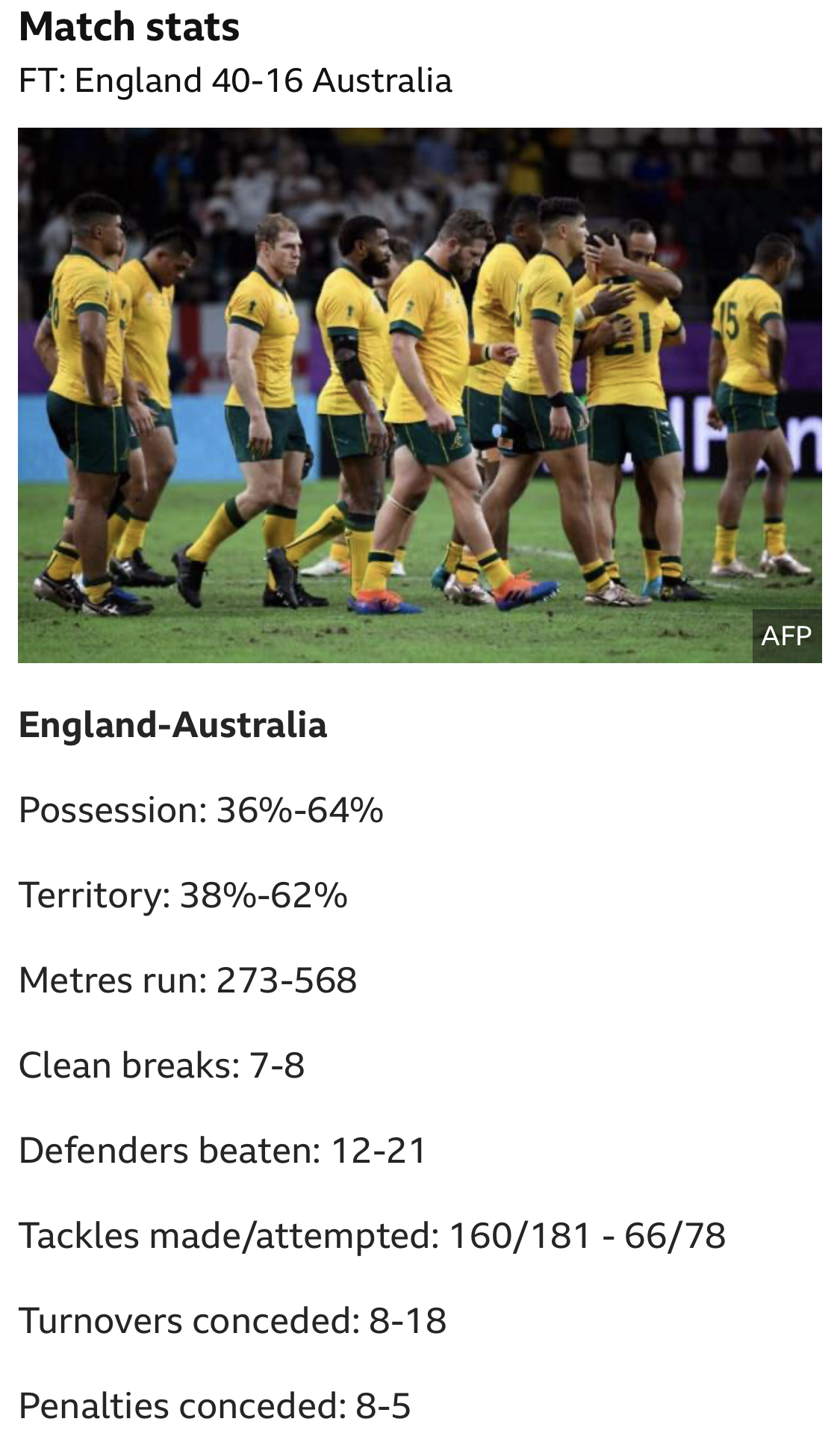I thought both teams played with huge heart and effort and OZ had to try something different to get inside Eng. 4 yrs ago all their secial plays came off. This time only a few did. Eng mde very few errors and were very incisive. Fair result and it shows steady improvement game to game. Lets hope they step up even more next week. There must be a few on here choking on their cornflakes this morning !!! ![]()